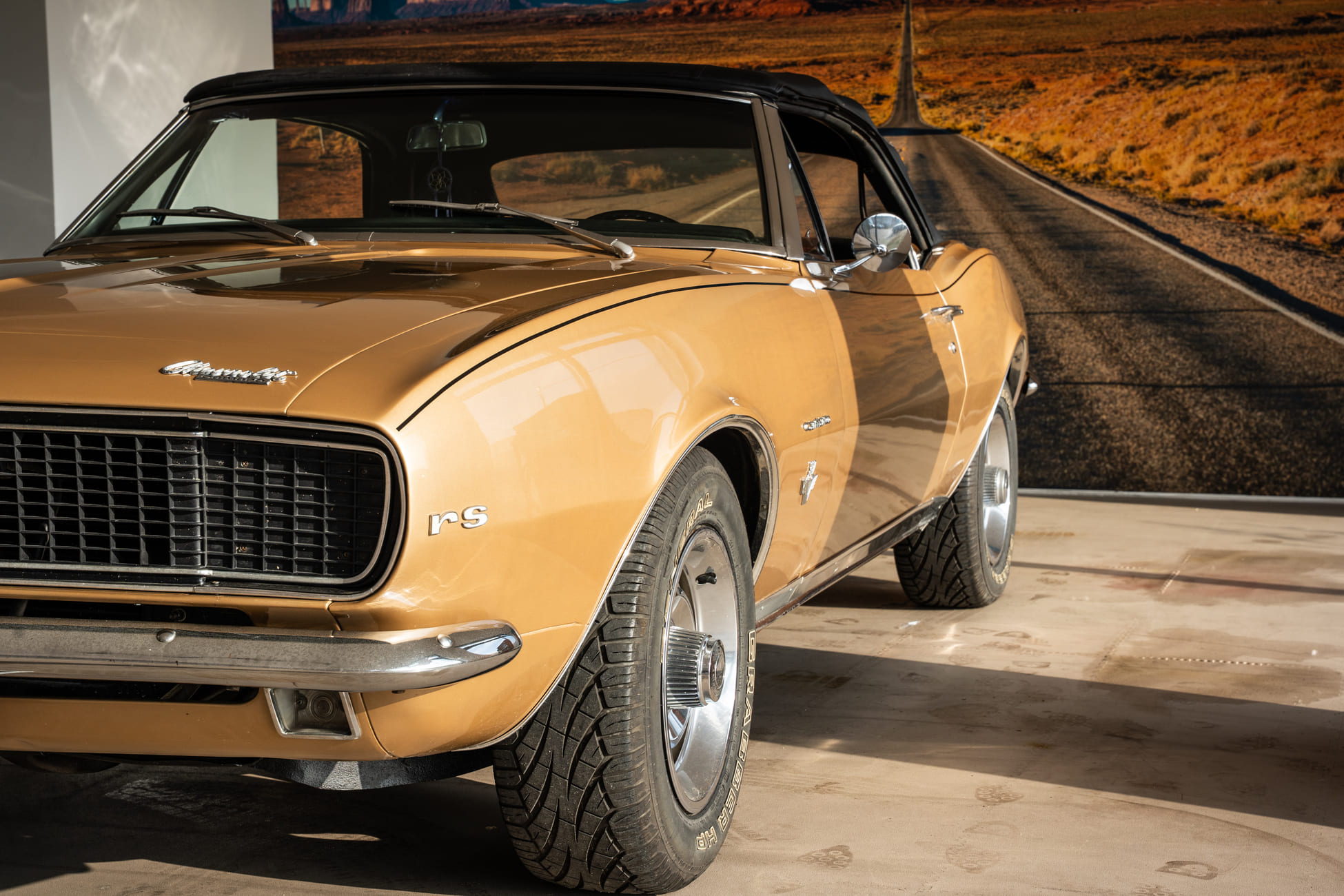 Der 1967er Camaro RS Convertible ist zeitlos – und gleichzeitig ein absoluter Hingucker. Das Rally Sport-Paket hebt ihn optisch klar ab: Besonders markant sind die verdeckten Scheinwerfer, die dem Wagen ein eleganteres, hochwertigeres Gesicht geben.